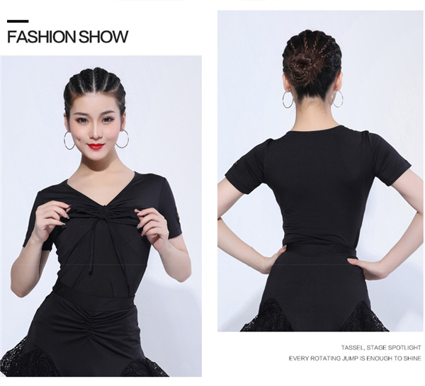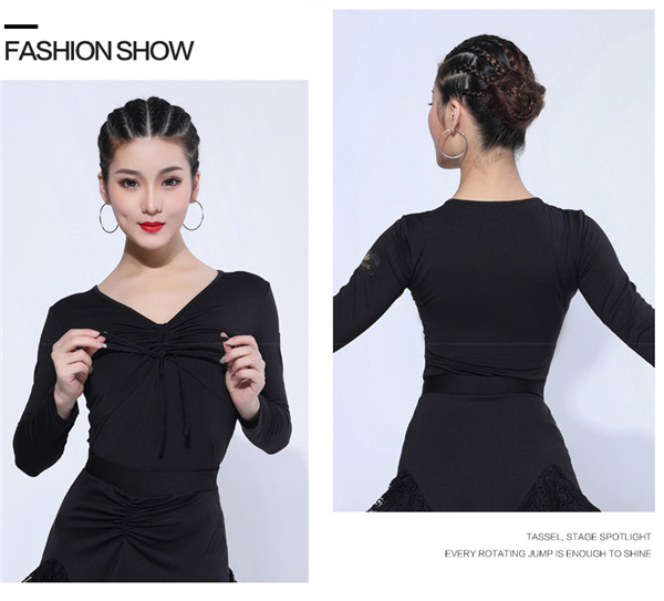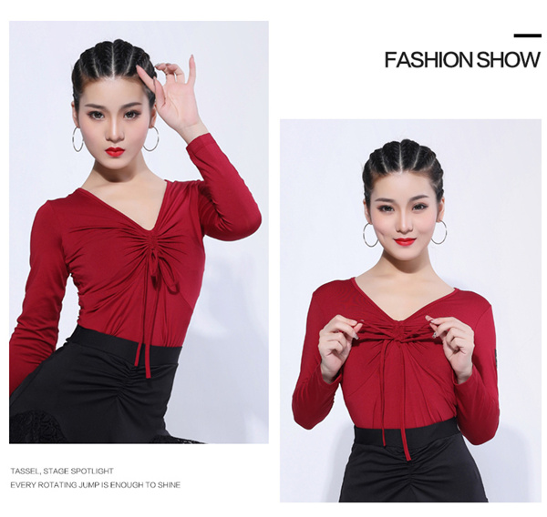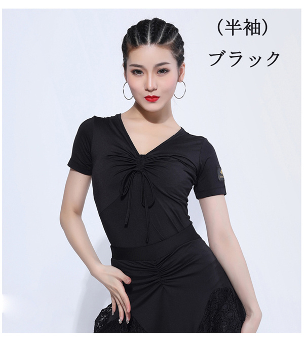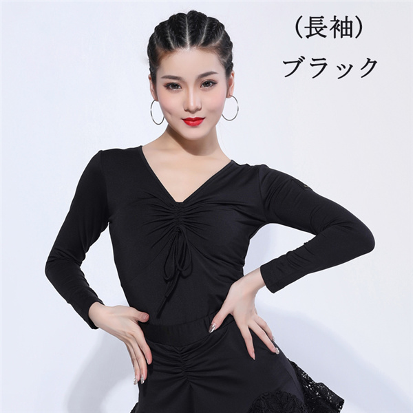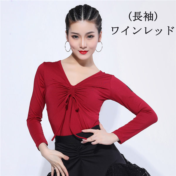 【レビュー投稿で+5%還元】社交ダンス トップス ダンスウェア 半袖 袖あり 長袖 ブラック 赤 黒 Vネック リボン レディース 社交ダンス衣装 上着 競技着 レッスン 練習着 ラテンダンス モダンダンス 上着 ラテン ステージ 衣装 演出着 ダンストップス M/L/XL/2XL/3XL