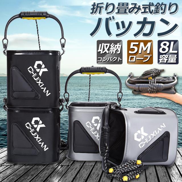釣り バケツ バッカン 水汲み みずくみバケツ 釣り 折りたたみ バケツ 8L チャック付き 魚が逃げない ロープ 5m EVA 海釣り 生かしバケツ 釣り 水くみバケツ アウトドア コンパクト