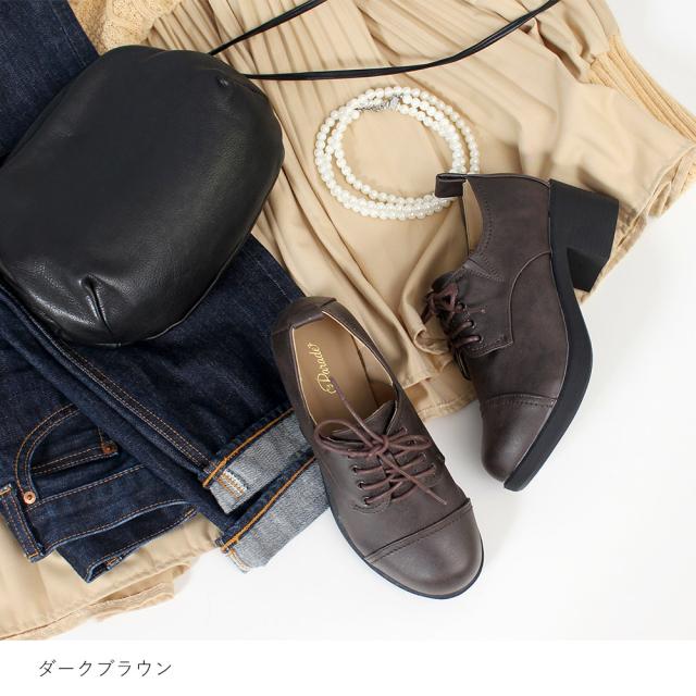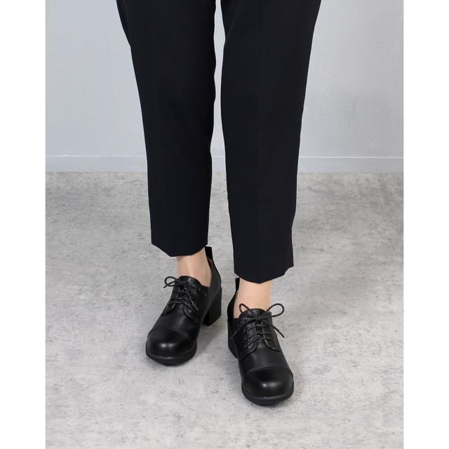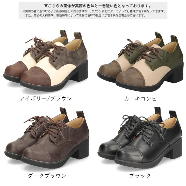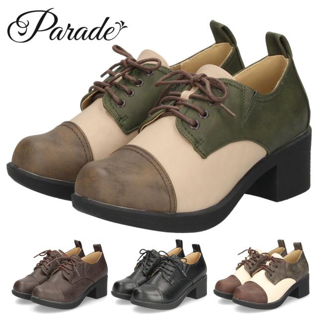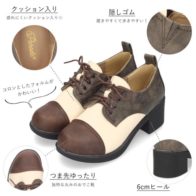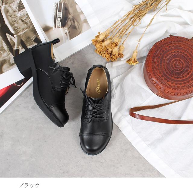 レースアップシューズ レディース 黒 マニッシュシューズ 厚底 靴 ヒール チャンキーヒール ラウンドトゥ Parade 376 おでこ靴 トラッド
