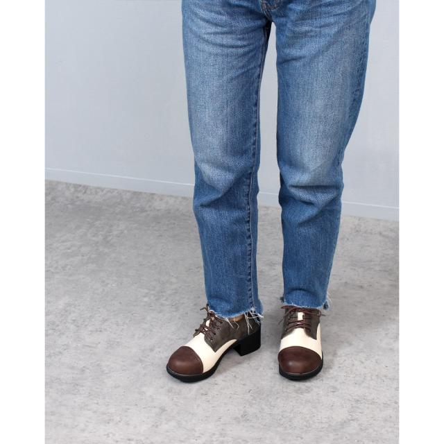 ゴツめの厚底がヴィンテージライクな旬顔シューズ。約6cmの厚底ソールは安定感抜群でスタイルアップも叶う!アイボリーxブラウンはガーリーな配色がとっても可愛い。スカートにもパンツスタイルにもよく合い、ソックスとの相性もバッチリ。その日の気分に合わせてコーデを楽しもう!コロンと丸みが可愛いかたちでつま先ゆったり☆ライナーやインソールにはクッション素材を使いソフトな履き心地。滑りにくい靴底で秋から冬にかけても大活躍します!