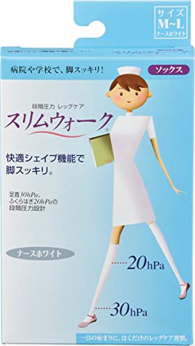 着圧ソックス スリムウォーク ナース ホワイト M-L 着圧 ソックス 看護師 SLIMWALK