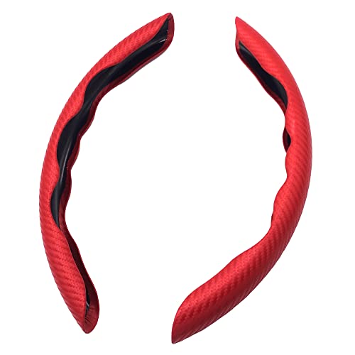 ハンドル保護カバー ステアリングカバー カーボン素材 滑り止め 汚れ防止 取り付け簡単 カー用品 (レッド)