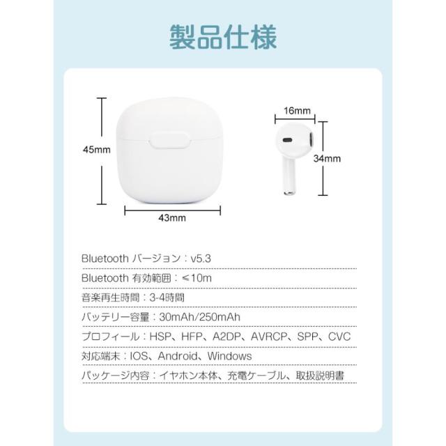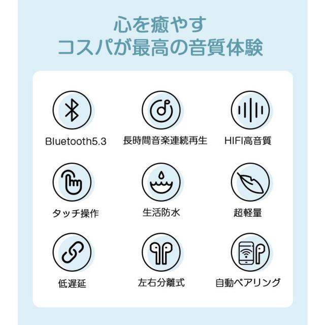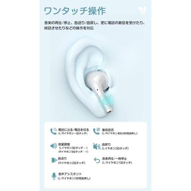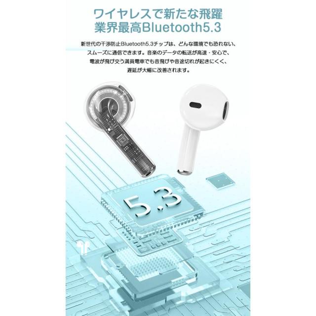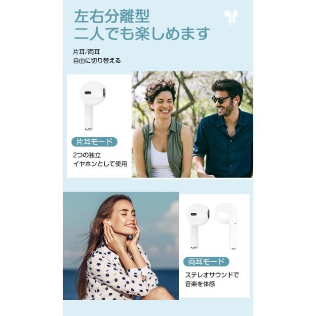 ワイヤレスイヤホン Bluetooth5.3 HIFI高音質 Siri対応 小型 軽量 ワンタッチ操作 低遅延 左右分離型 片耳 両耳通話 マイク付き 自動ペアリング 超長時間航続
