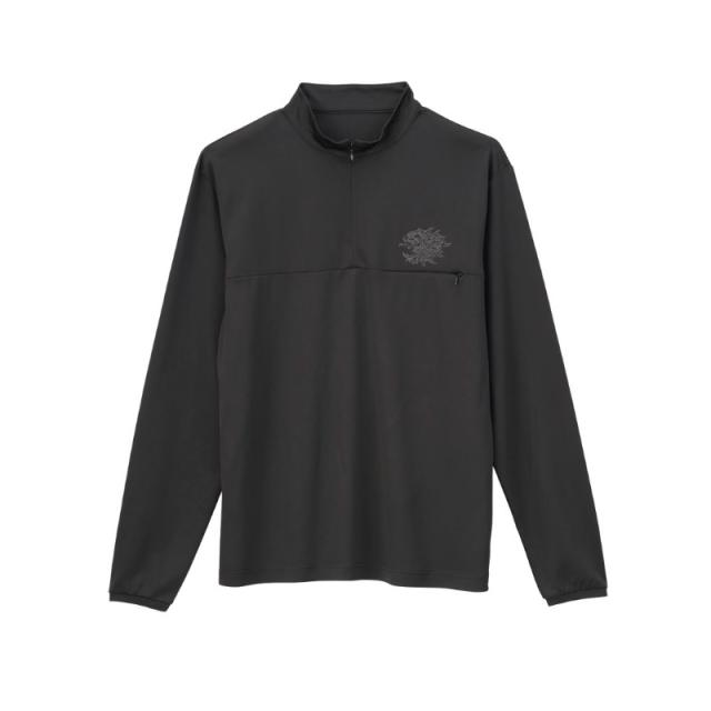 ハーフジップにワンポイントで再帰反射カラーの獅子マークをプリントしたシンプルデザインで、家から釣り場までの間にもご着用いただけます。