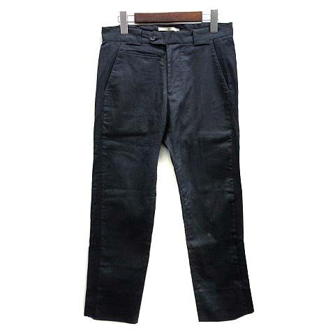 【中古】エヌフォー N4 サテン 切替 テーパード パンツ リネン混 ストレッチ 無地 ネイビー 紺 1 メンズ
