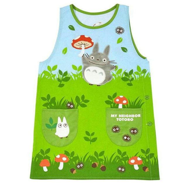 となりのトトロ エプロン 野原のトトロ ラン型 ジブリ キャラクター タバード サイドボタン かぶりエプロン アップリケ かっぽう着 丸眞