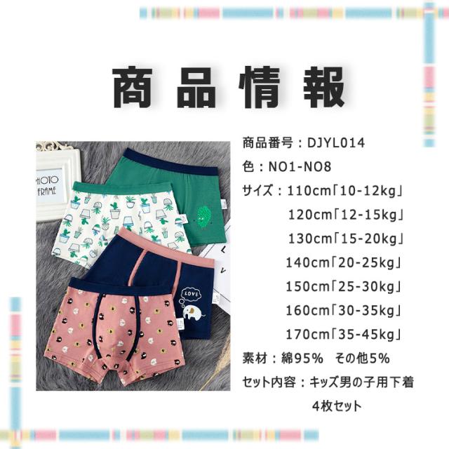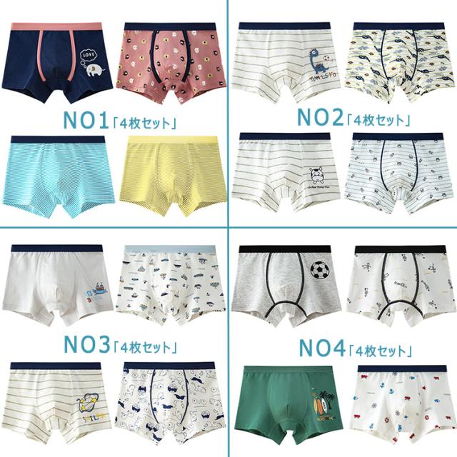 【人気商品】キッズ パンツ 下着 男の子用 4枚セット ボクサーパンツ キッズ&ジュニア ボクサー インナーパンツ ボクサーブリーフ ボクサーショーツ 前閉じ 110 120 130 140 150 160 170 95%綿 他5% 弾力 伸縮 通気性 吸湿 吸汗 柔らか