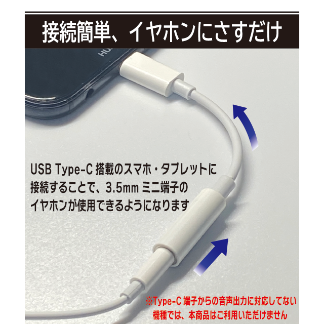 ※Type-C用の音声変換アダプターです。LightningやMicro USB Type-B端子はご利用できません