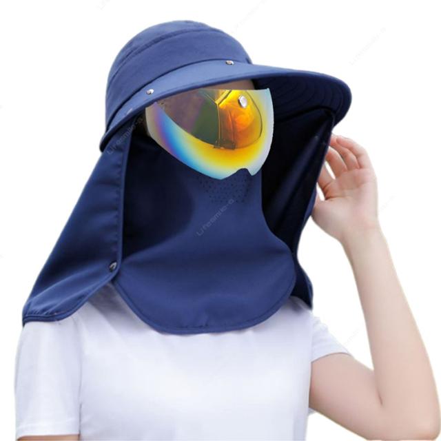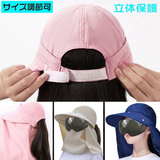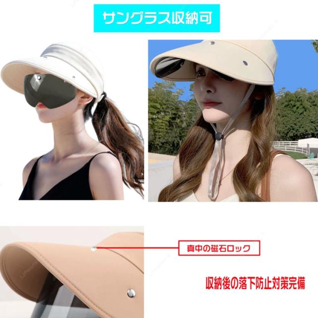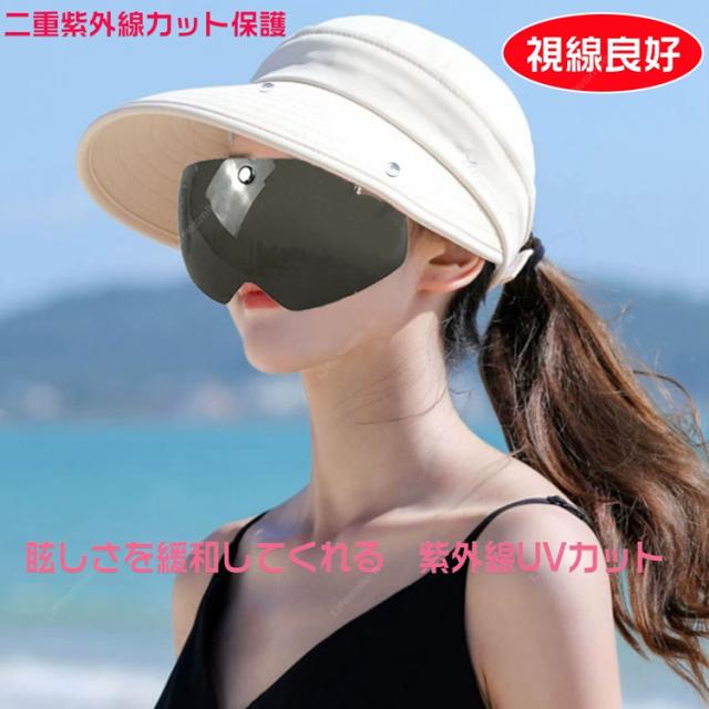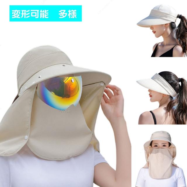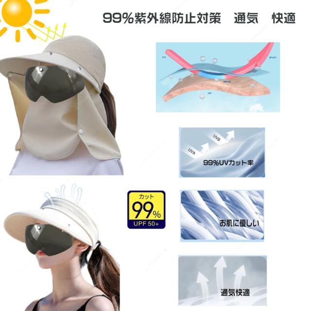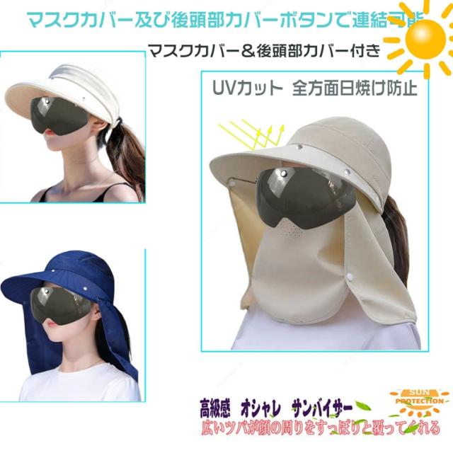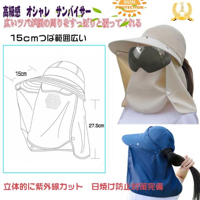 サンバイザー レディース 日除け帽子 自転車 UVカット つば広帽子 紫外線対策 フェイスカバー フェイスガード UVカット 日焼け軽減 ゴルフ ワイドバイザー
