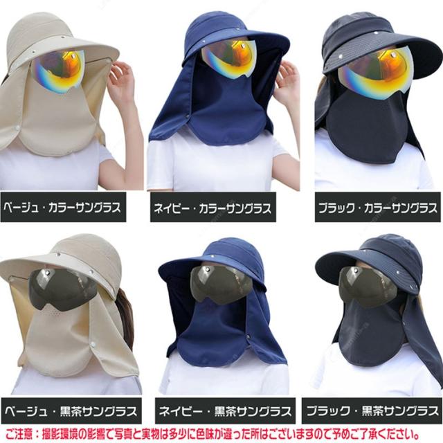 つば広UVカット帽子にはサングラス付きで目元範囲も紫外線防止対策を完備しております。