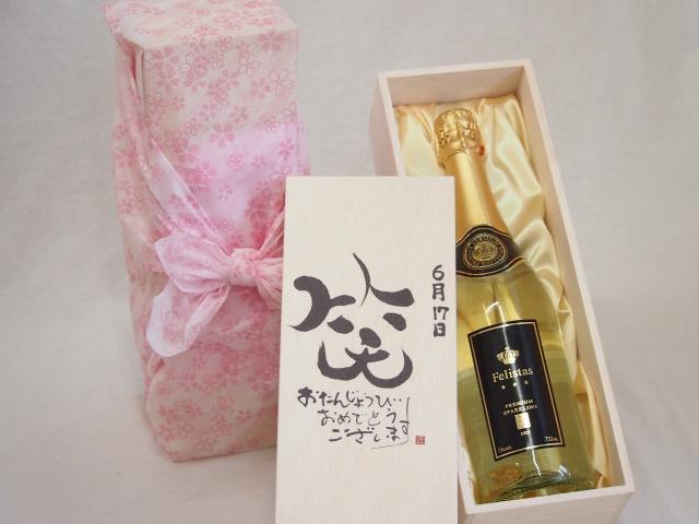 誕生日6月17日セット おたんじょうびおめでとうございます 笑う門には福来たるフェリスタス24カラット金箔入りスパークワイン(ドイツ)750ml デザイン書道家 榮田 清峰作