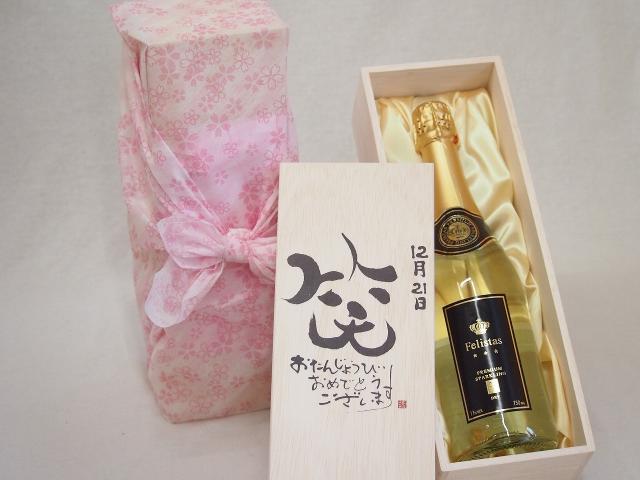 誕生日11月2日セット おたんじょうびおめでとうございます 笑う門には福来たるフェリスタス24カラット金箔入りスパークワイン(ドイツ)750ml デザイン書道家 榮田 清峰作