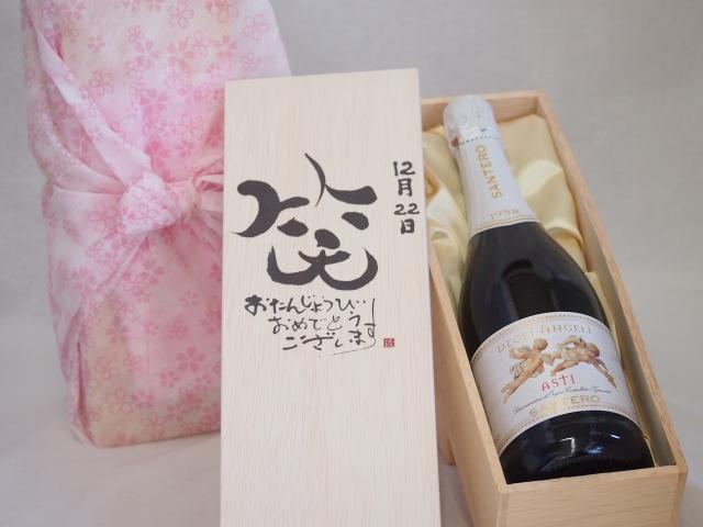 誕生日12月22日セット おたんじょうびおめでとうございます 笑う門には福来たる天使のアスティ イタリアスパークリングワイン(甘口)750ml デザイン書道家 榮田 清峰作