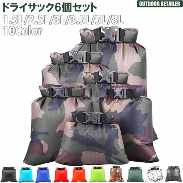 防水ドライバッグ 1.5L 2.5L 3L 3.5L 5L 8L 6枚セット ドライサック ドライサック 圧縮袋 防水バッグ 収納袋 防水 軽量 薄型 小さめ プール バッグ KAN000265