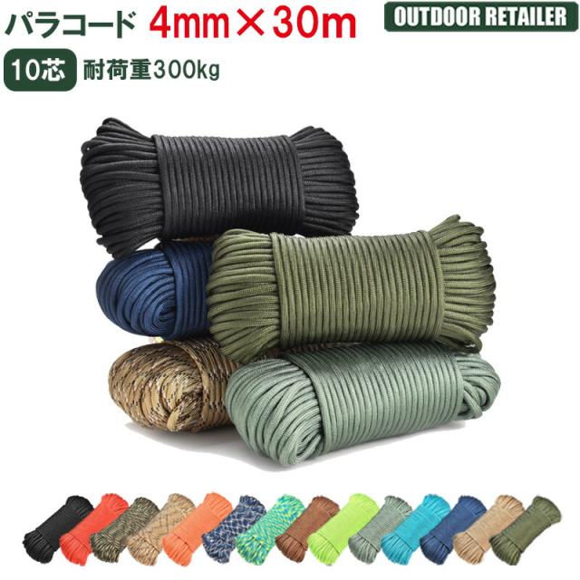 パラコード 4mm 30m テントロープ ガイロープ ガイドロープ タープロープ ブレスレット リード キャンプ ロープ 10芯 耐荷重300kg アウトドアKAN000307