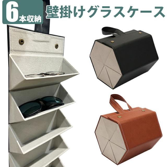 6本収納 メガネケース サングラスケース 眼鏡ケース コレクションケース PUレザー ボックス コレクション 収納ケース 収納 保護 眼鏡小物 レンズ保護 コンパクト 壁掛け 小物入れ 擦り傷防止 旅行用 車用 携帯便利 KAN000466