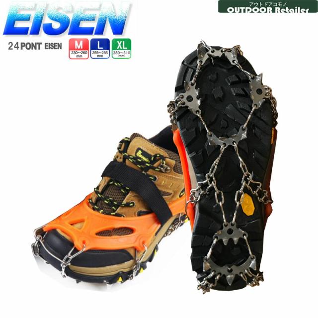 アイゼン 24本爪 簡易アイゼン 専用収納袋 靴底用 23〜31cm対応 かんじき 雪 滑り止め チェーン式 ステンレス スパイク 転倒防止 トレッキング KAN000488