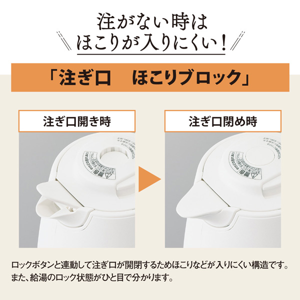 ほこりの入りにくい「注ぎ口ほこりブロック」で清潔!