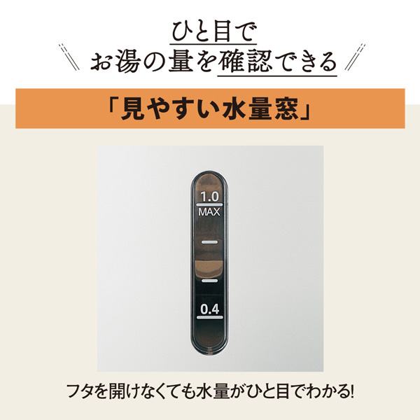 - ひと目でお湯の量を確認できる「見やすい水量窓」付き。