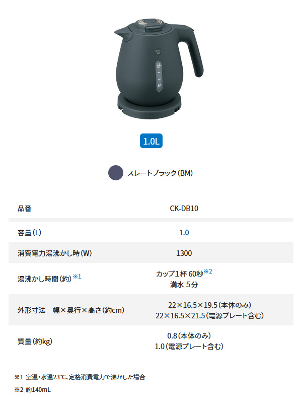象印マホービン 電気ケトル CK-DB10-BM スレートブラック 電気ポット 1リットル 湯沸かしケトル 湯沸かしポット 注ぎ口ほこりブロック 転倒湯もれ防止 空焚き防止 蒸気セーブ 自動電源オフ【ZOJIRUSHI】