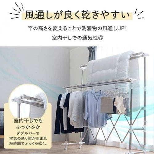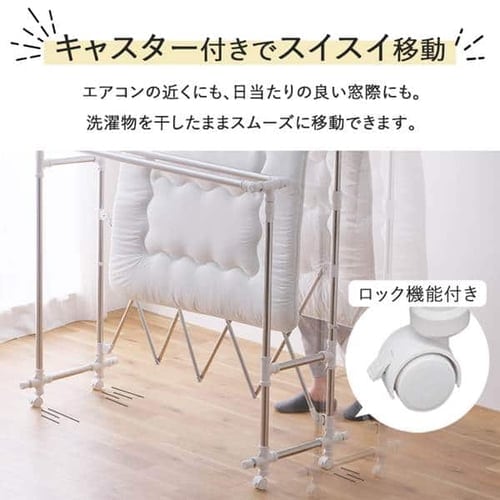 洗濯物干し 室内物干し コンパクト 収納 ステンレス 丈夫 サビにくい 幅 高さ 伸縮 大容量 布団干し 布団4枚 通気性 組立簡単 工具不要 キャスター付 物干し 室内 部屋干し 梅雨 除湿機 サーキュレーター 花粉 アイリスオーヤマ H-FTM2100 *