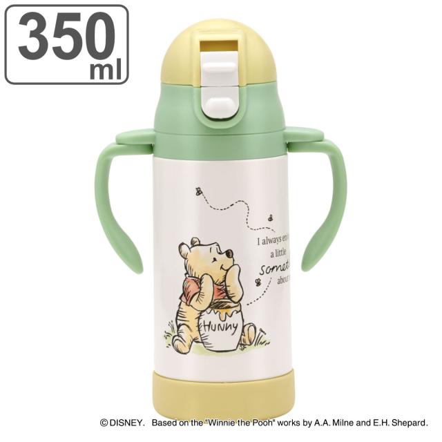 ベビーマグ 2WAY ストロー ステンレス 水筒 350ml 保冷 キャラクター ( くまのプーさん ディズニー ストロー付き ストローマグ 直のみ かわいい 両手 マグ ワンプッシュ ボトル マグボトル )