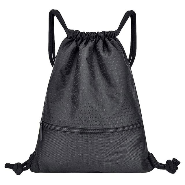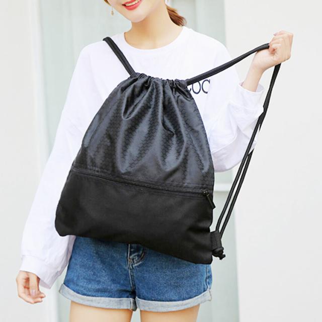 ジムサック 軽量ナイロン製 大容量 巾着型ナップサック 撥水加工 高耐久 ジップポケット付 シンプルデザイン GYMS3443