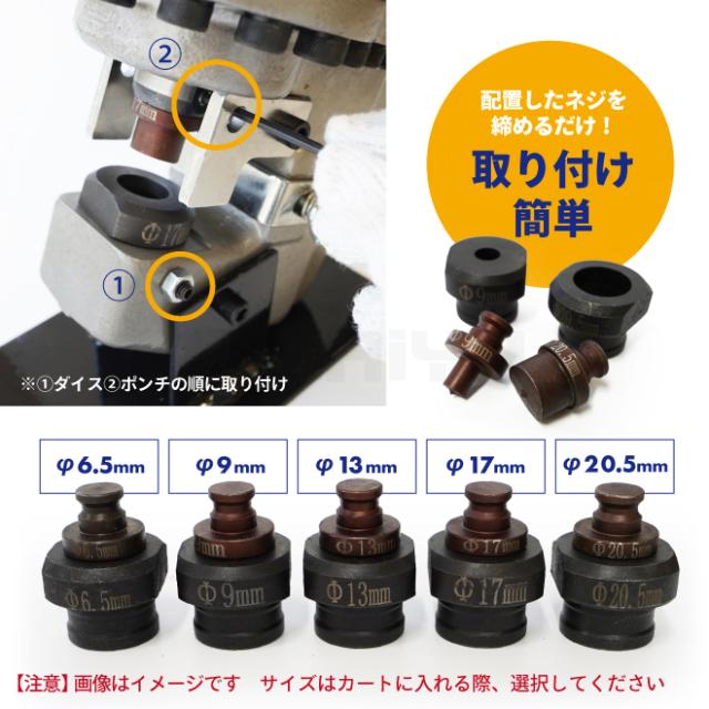 電動油圧パンチャー専用 パンチダイ 交換用 単品 各サイズ 替刃 油圧式 下穴不要 MHP-20用 Φ6.5mm Φ9mm Φ13mm Φ17mm Φ20.5mm 穴あけ KIKAIYA