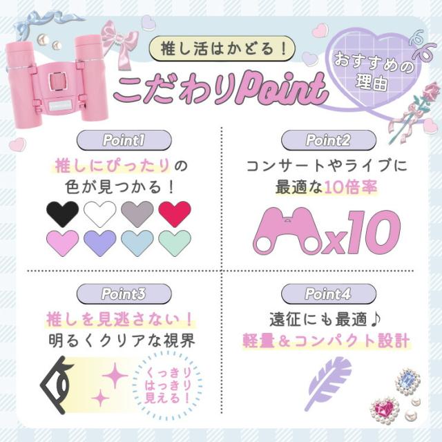 双眼鏡 10倍 高倍率 おすすめ 人気 軽量 軽い コンパクト 小さい ミニ 使いやすい 初心者 カンタン 簡単 持ち運び 携帯 旅行 海外旅行 国内旅行 ストラップ ロングストラップ ネックストラップ ひも ショルダーストラップ コンサート ライブ フェス 夏フェス 推し活 ヲタ ヲタ活 必須アイテム スポーツ 野球 サッカー バードウォッチング 舞台 観劇 歌舞伎 ドーム スタジアム 野球 野鳥 初心者 かわいい 登山 ゴルフ オペラグラス