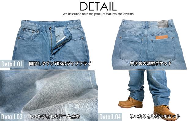 当店自慢のシルエットにこだわったワイドシルエットのデニムパンツです。 インディゴカラーのダボパンがストリート系にベストマッチ ダンスなどでもかっこよく着こなせる仕上がりになっております。 薄すぎず暑すぎずオールシーズン使えるように設計しておりますので定番の一着になること間違いなし! | |
