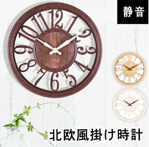 壁掛け時計 おしゃれ 静音 北欧 掛け時計 かべ掛け時計 シンプル 大きい 静か アナログ オシャレ 木目調 ウォールクロック 連続秒針