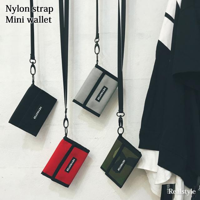 ●シンプルなプレートロゴデザインのナイロンミニ財布
