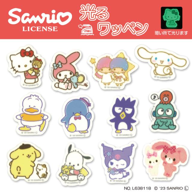 サンリオキャラクターズ 光るワッペン アイロン 蓄光 光る 蛍光 アイロン圧着かわいい キャラクター グッズ プレゼント 服 アイコン