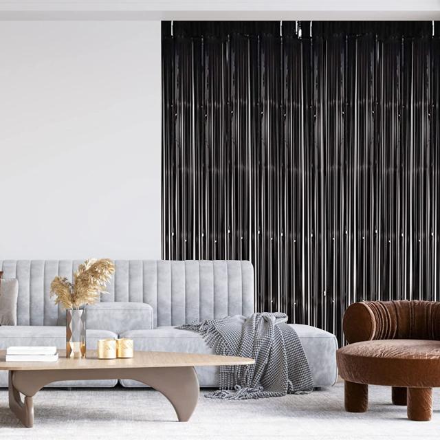 高品質な素材:カーテンは高品質のポリエチレンフィルムを使用しており、他のフィルムよりも輝きがあり、丈夫で再利用可能、色あせしにくいです。