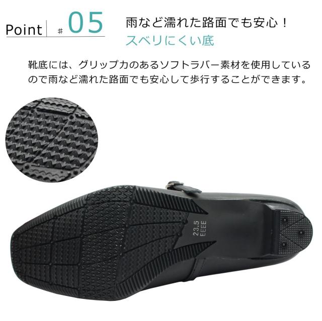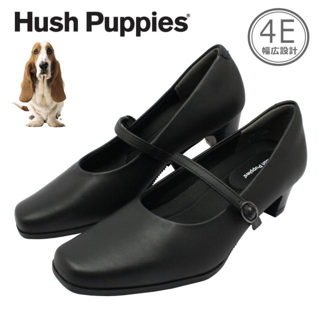 | Hush puppies ハッシュパピー レディース パンプス ベルト 幅広4E L-511T 511 スクエアトゥ 本革 低反発ソール 婦人靴 バンド クロ ブラック