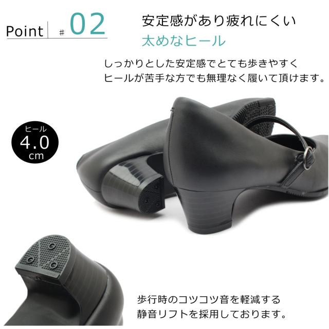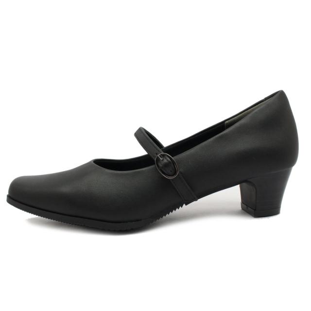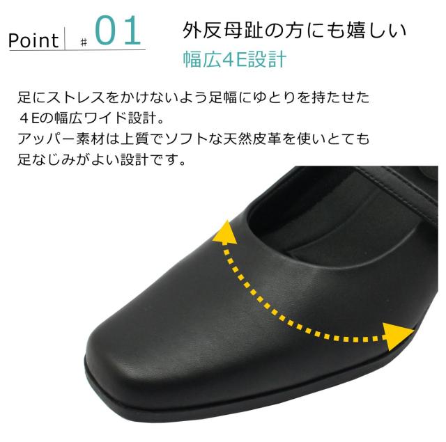 Hush puppies ハッシュパピー レディース パンプス ベルト 幅広4E L-511T 511 スクエアトゥ 本革 低反発ソール 婦人靴 バンド クロ ブラック