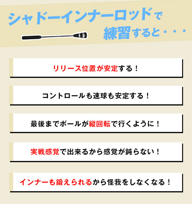特徴:腕のしなりを最大限発揮する、シャドーピッチング革命!