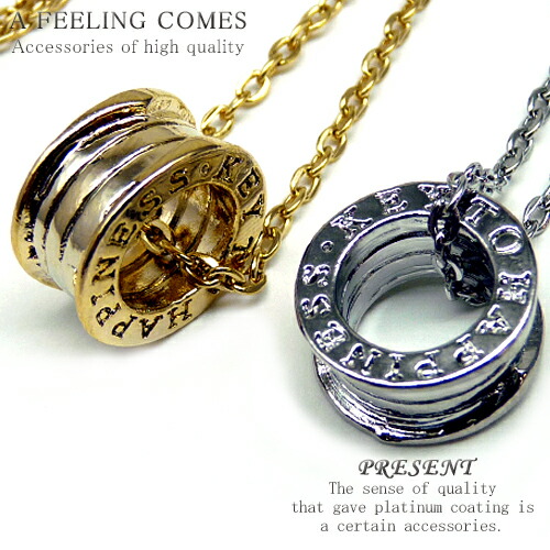 pea22 2本分の価格 人気ペアネックレス「幸せの鍵」刻印 高級プラチナ加工&高級18kゴールド加工 人気リングネックレス ペアアクセサリー ファッション プレゼント ギフト おしゃれ