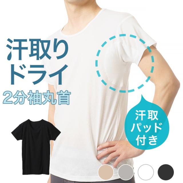 素肌ドライ 汗取り インナー 2分袖 丸首 メンズ 春夏 脇汗 シャツ パッド付き ドライ 汗染み 防止 汗 対策 シャツ 綿混 汗とり パット付き 吸汗速乾 肌着 紳士 男性 L4790T-E