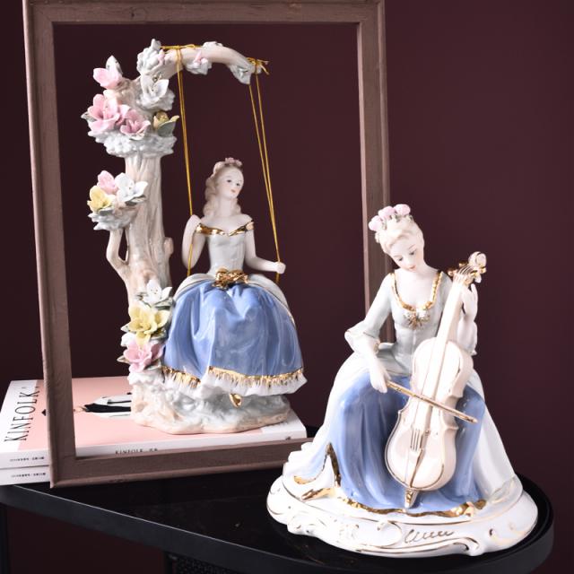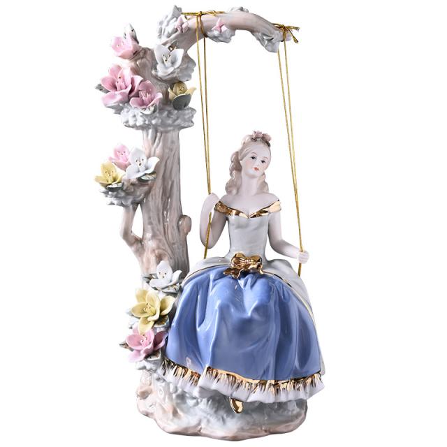 陶器 置物 オブジェ ヨーロッパ 西洋人 宮廷 装飾 インテリア ガーデンニング スペイン調 陶器オブジェ 王女とブランコ ロマンティック 女性 レディー ブランコ