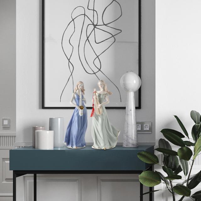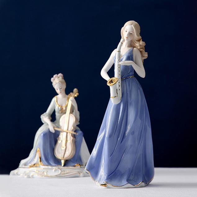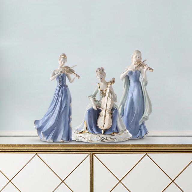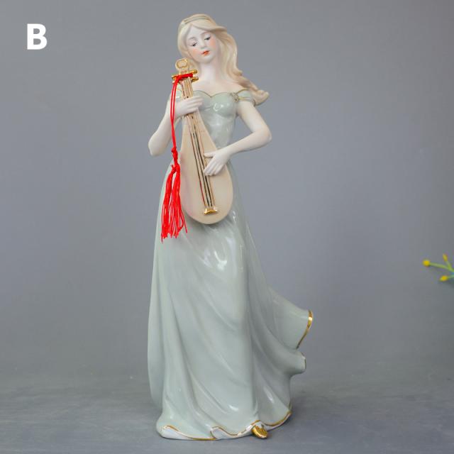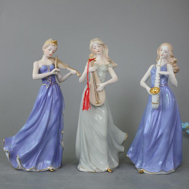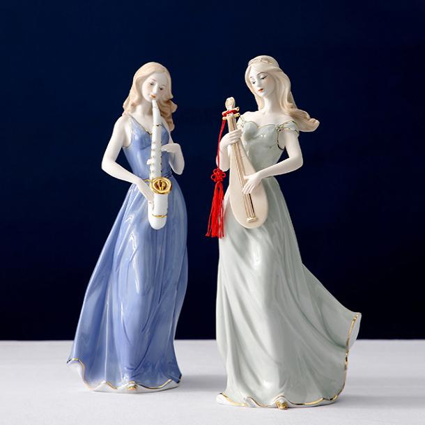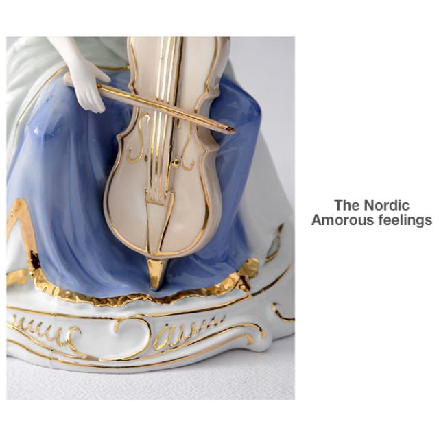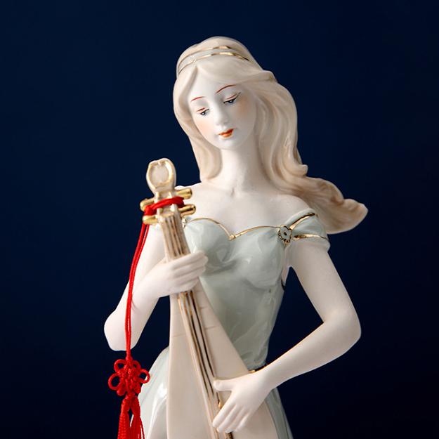 きれいな音色が聞こえてきそうな楽器を弾く、白くて美しい肌の西洋人女性の陶器像です。