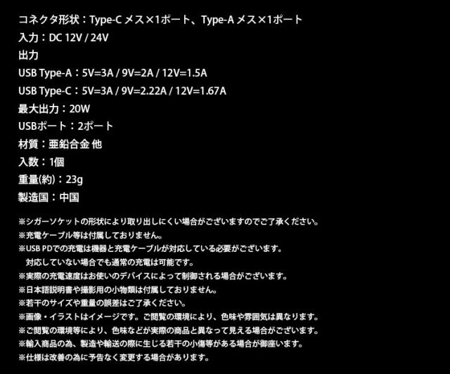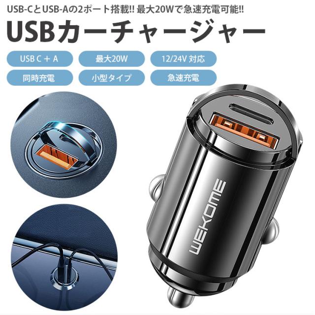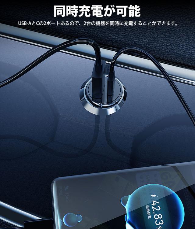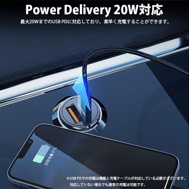 カーチャージャー 2ポート PD 20W USB C USB A シガーソケット 急速充電 小型 コンパクト 車載充電器 タイプ C スマートフォン