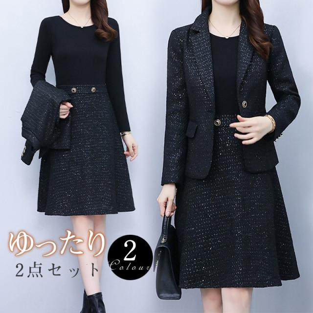 2点セット レディース ワンピース スーツ 長袖 セレモニー ママ母 入学式 OL 入園式 卒業式 卒園式 服装 オフィス 七五三