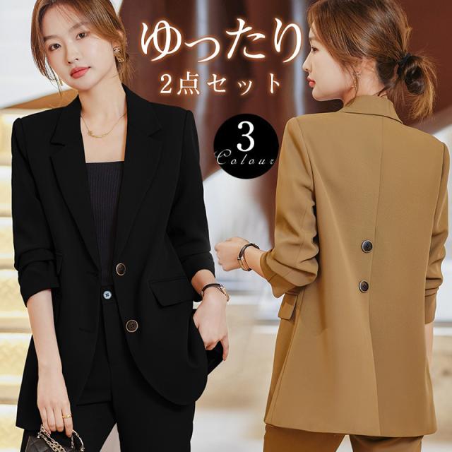 2点上下セット レディース パンツ スーツ 長袖 セレモニー ママ母 入学式 OL 入園式 卒業式 卒園式 服装 オフィス 七五三