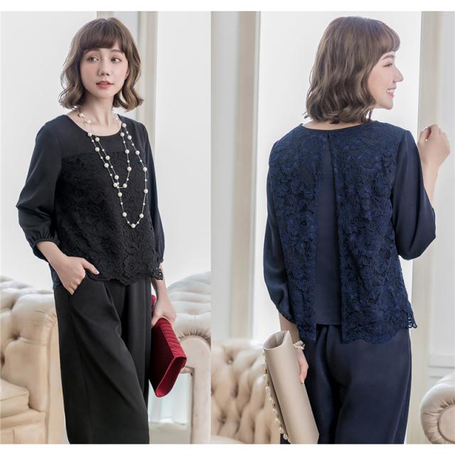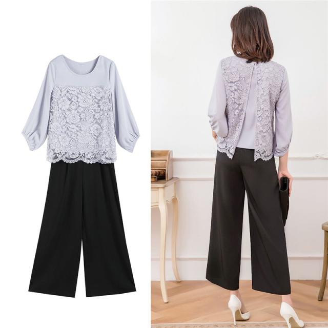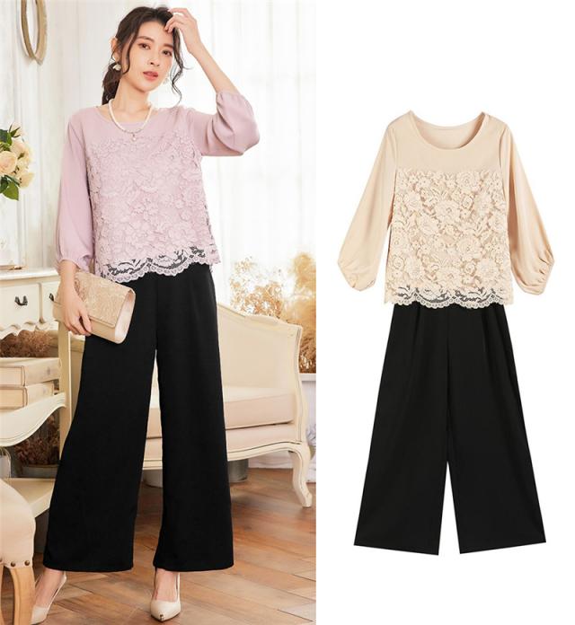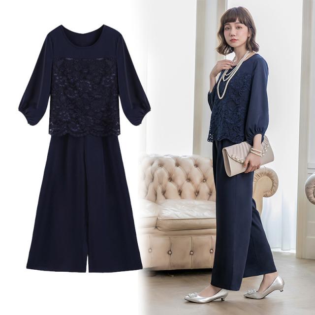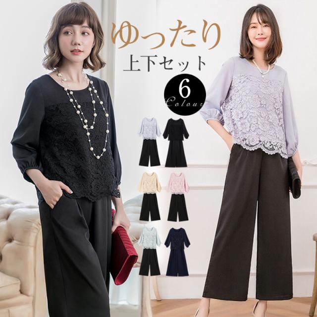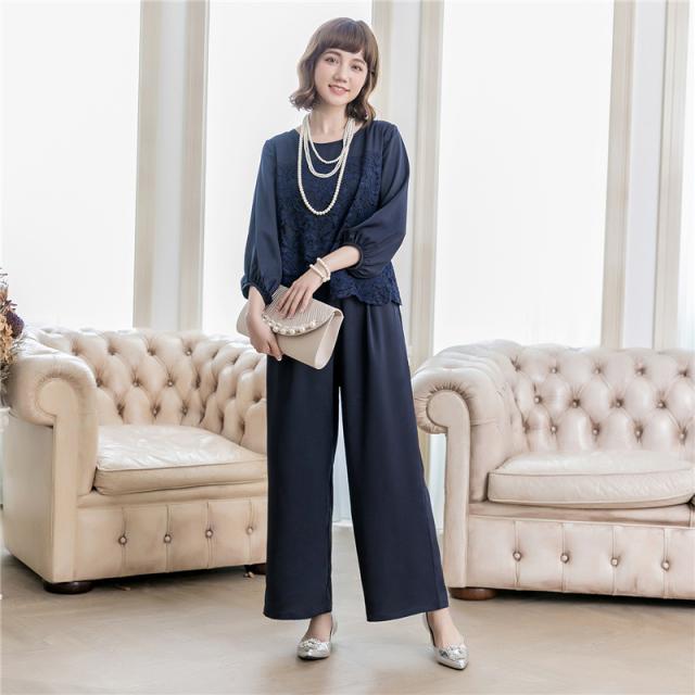 セットアップ レディース セレモニー スーツ パンツドレス 体型カバー ママスーツ 花柄 母 入学式 入園式 卒業式 卒園式 服装