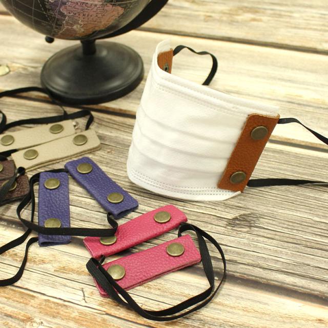不織布マスク、使い捨てマスクを繰り返し使ったり、ゴムが切れてしまった時も本革ジョイントホルダーセットを使うことでお洒落で粋なスタイルに大変身。