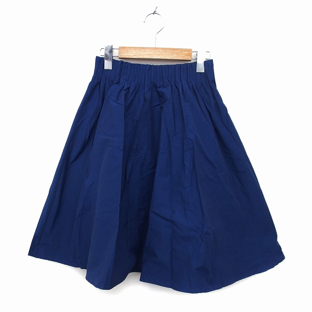 【中古】ローズバッド ROSE BUD スカート フレア ひざ丈 ギャザー タック ゆったり 無地 F 紺 ネイビー /NT10