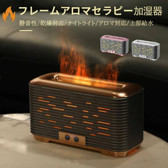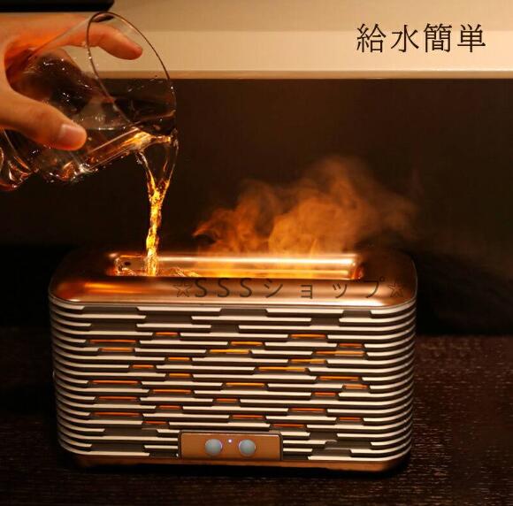 アロマディフューザー 炎 加湿器 卓上 アロマ対応 炎 間接照明 USB充電式 小型 静音 アロマテラピー加湿器 乾燥対策 炎の効果