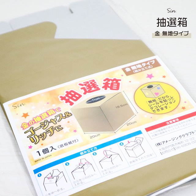 抽選箱 金 18.5cm × 20cm × 20cm くじ 箱 くじ引き 無地 応募箱 ボックス つかみ取り 宴会 新年会 忘年会 二次会 結婚式 パーティー グッズ