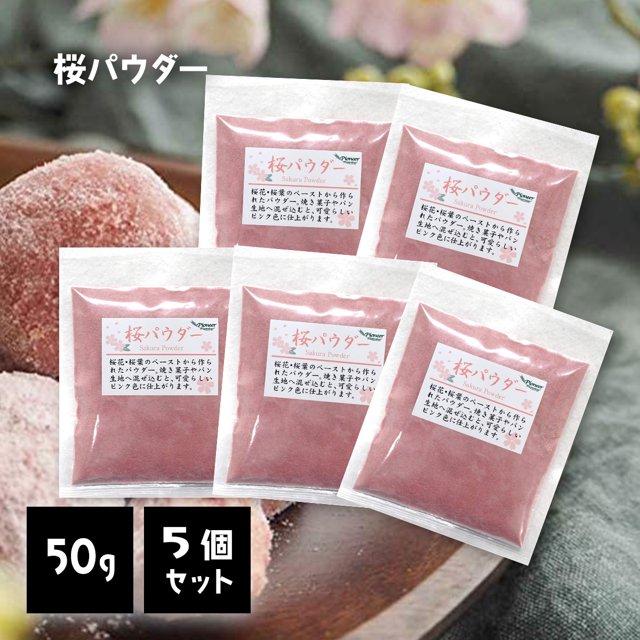 桜 パウダー 50g 5個セット 桜 粉 粉末 ピンク 着色料 食紅 さくら サクラ お菓子 和菓子 材料 桜餅 ひな祭り 雛祭り